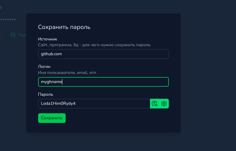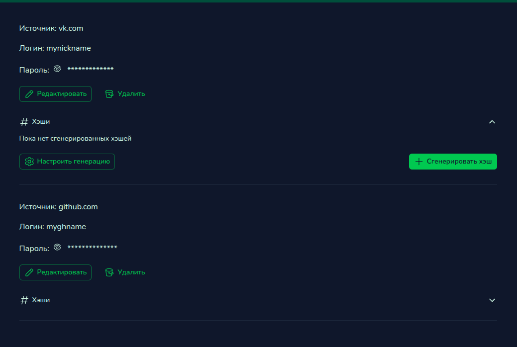 Любые надёжные программы - платные, требуют Visa, Mastercard. Использовать в личных целях рабочий софт я не хочу. Поэтому за пару вечеров я написал интерфейс генерации, сохранения, редактирования и хэширования паролей.